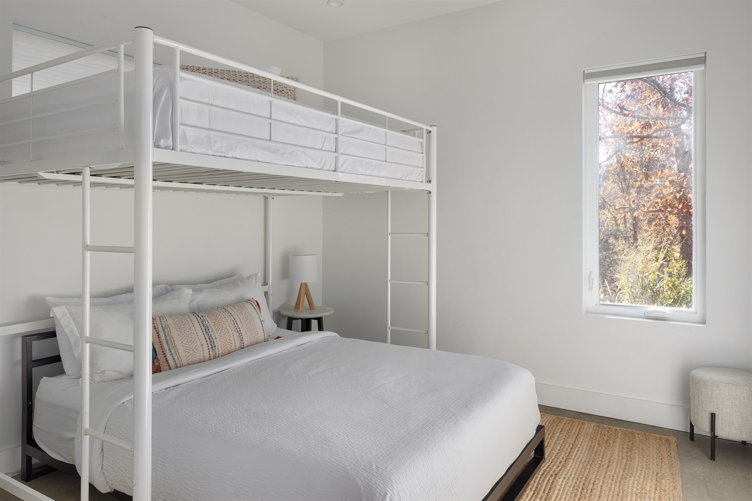 • Guest Room: Queen bed + Twin bunk (beds separated for comfort) + rollaway bed