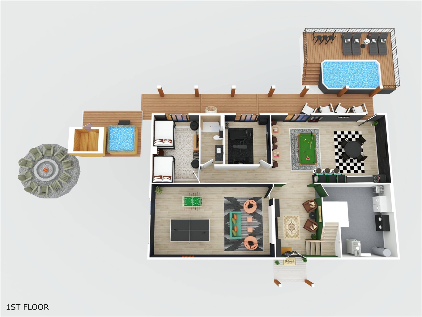 • Bunk room with 4 full-over-full bunks + 2 twin trundles